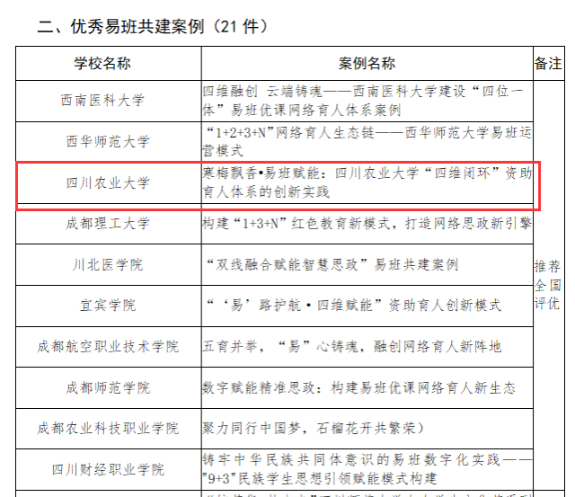 47日,四川省教育厅易班建设与发展中心公布了2024年度四川省易班共建高校评优结果,我校获“优秀易班共建高校”“优秀易班共建案例”“优秀易班辅导员”三项荣誉。