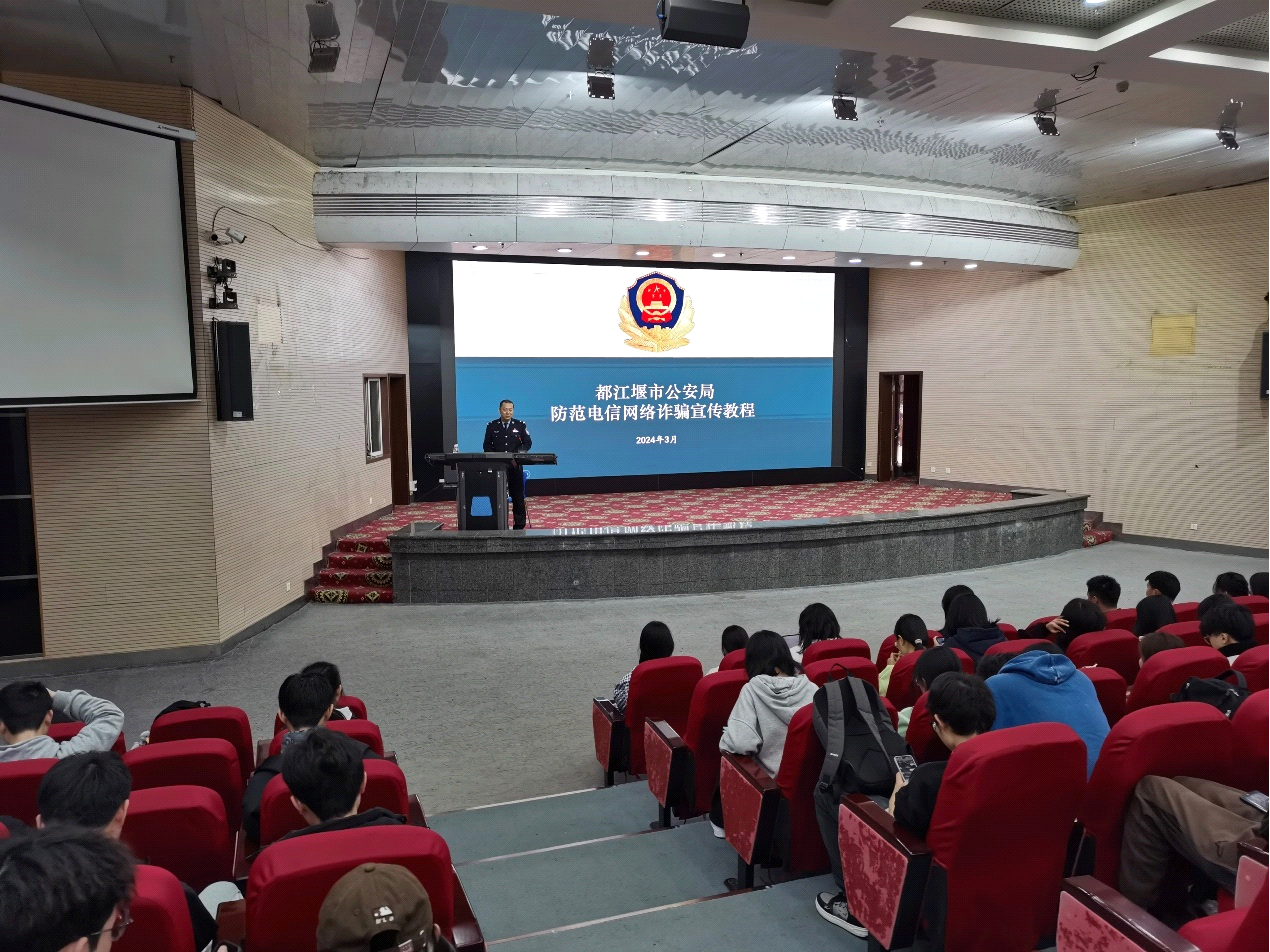 3月19日下午,保卫处组织开展民警反诈进校园活动,来自成都校区和雅安校区驻地公安机关民警为两校区近500名同学带来“开学反诈第一课”。