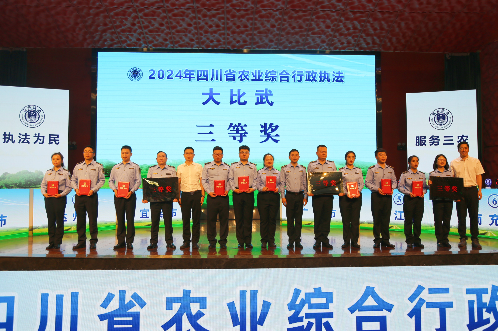 2023年,全省农业综合行政执法机构按照构建1个协同高效的农业行政执法体系,聚焦粮食安全、生猪保供、“十年禁渔”3大领域,大力推动队伍建设、制度建设、装备建设、智慧建设4个方面工作走在全国前列争创全国一流的“134”工作思路,取得显著成效。此次竞赛重点围绕在种植业、畜牧业、渔业等执法行动中调查取证、违法事实认定、法律适用、执法程序、行政处罚裁量权使用等内容进行知识竞赛,旨在展示执法队伍风采,提高执法人员能力水平,为打造新时代更高水平的“天府粮仓”提供坚实的法治保障。