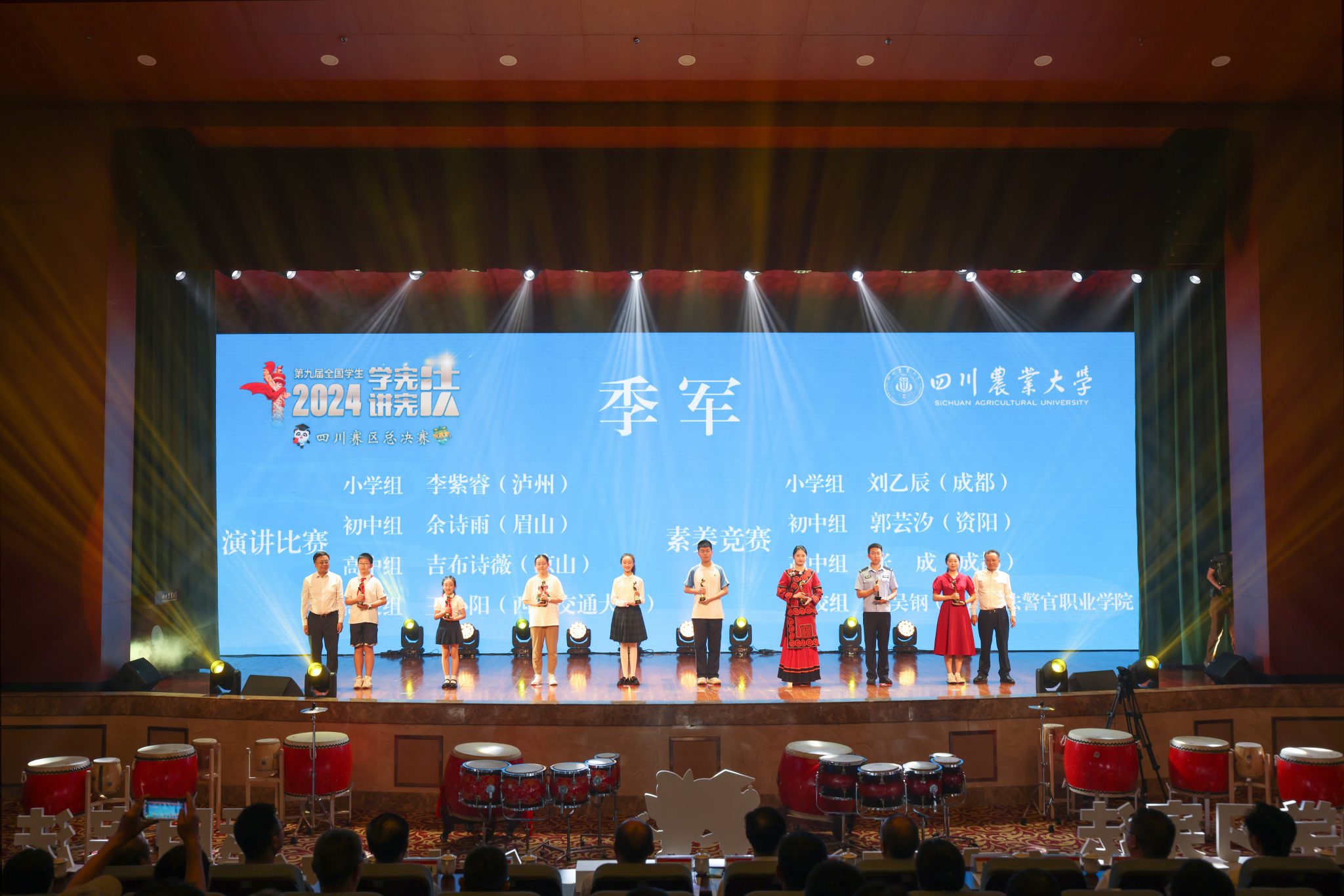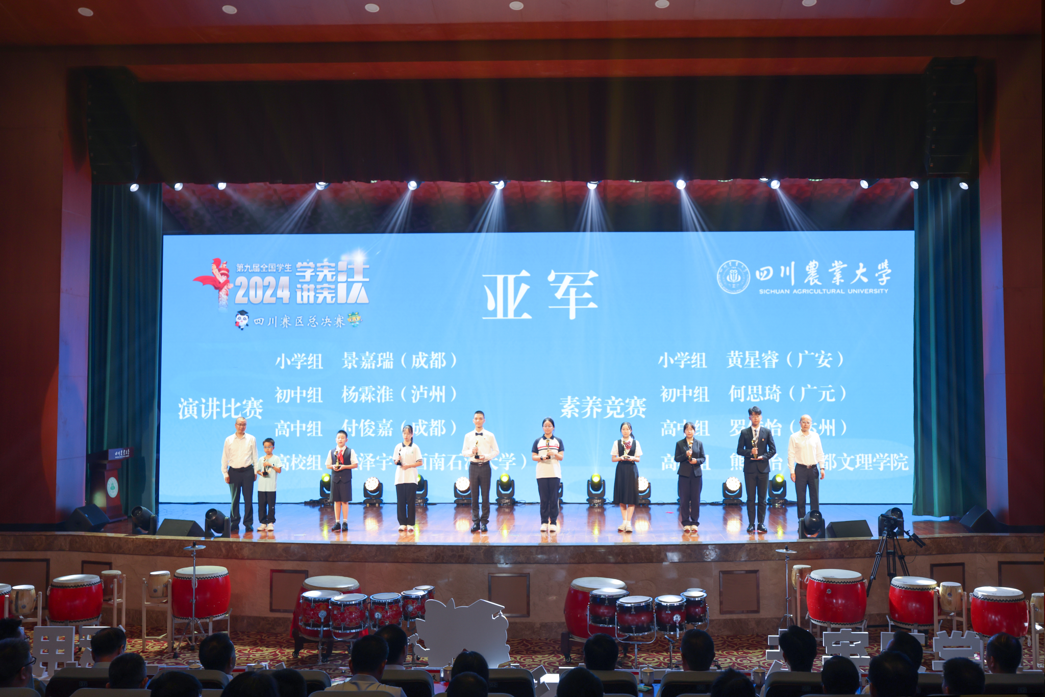 中共四川省委教育工委委员,教育厅党组成员、副厅长丁念友为获奖代表颁奖并宣读全国总决赛(四川)代表队选手名单。丁念友对组织本次活动的四川农业大学表示了衷心的感谢。他指出,宪法作为国家的根本大法,是治国安邦的总章程,加强宪法学习宣传教育是实施宪法的重要基础,也是培养青少年法治素养的关键环节。四川省深入学习贯彻习近平法治思想,不断创新法治宣传形式,通过非遗布偶戏、法制运力操、民法典绘本等新颖方式,让宪法精神深入人心。本次总决赛的参赛选手们在比赛中充分展示了新时代青少年的良好素养和风采,不仅展现了对宪法知识的深刻理解和熟练掌握,更体现了在实践中运用法律知识的能力。希望各地各校要依法为教、依法治理,将习近平法治思想融入学校教育全过程,着力提升教育教学质量,深入开展“互联网+法治教育”,不断健全学校、家庭、社会共同参与的教育格局。