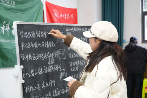 2024年秋季新发展团员向春华带领造价202402等五个班团支部学习中国近现代史选段,激励团员青年深刻认识新时代青年团员的使命与担当,为实现中华民族伟大复兴不断奋斗。人力202404等五个班团支部通过给革命烈士开国元勋书写一封信纪念“一二·九”运动。资环202303等五个班团支部运用大数据分析赋能主题班团活动阶段性成果;动物科技学院团委直属流动团支部等六个班团支部制作班团活动总结视频,开展“记忆一对一”连线活动,巩固团员青年每月主题班团活动学习成效。生技202301等六个班团支部团员青年化身“诚信倡导先锋”,以手抄报传递诚信应考的考风正能量。