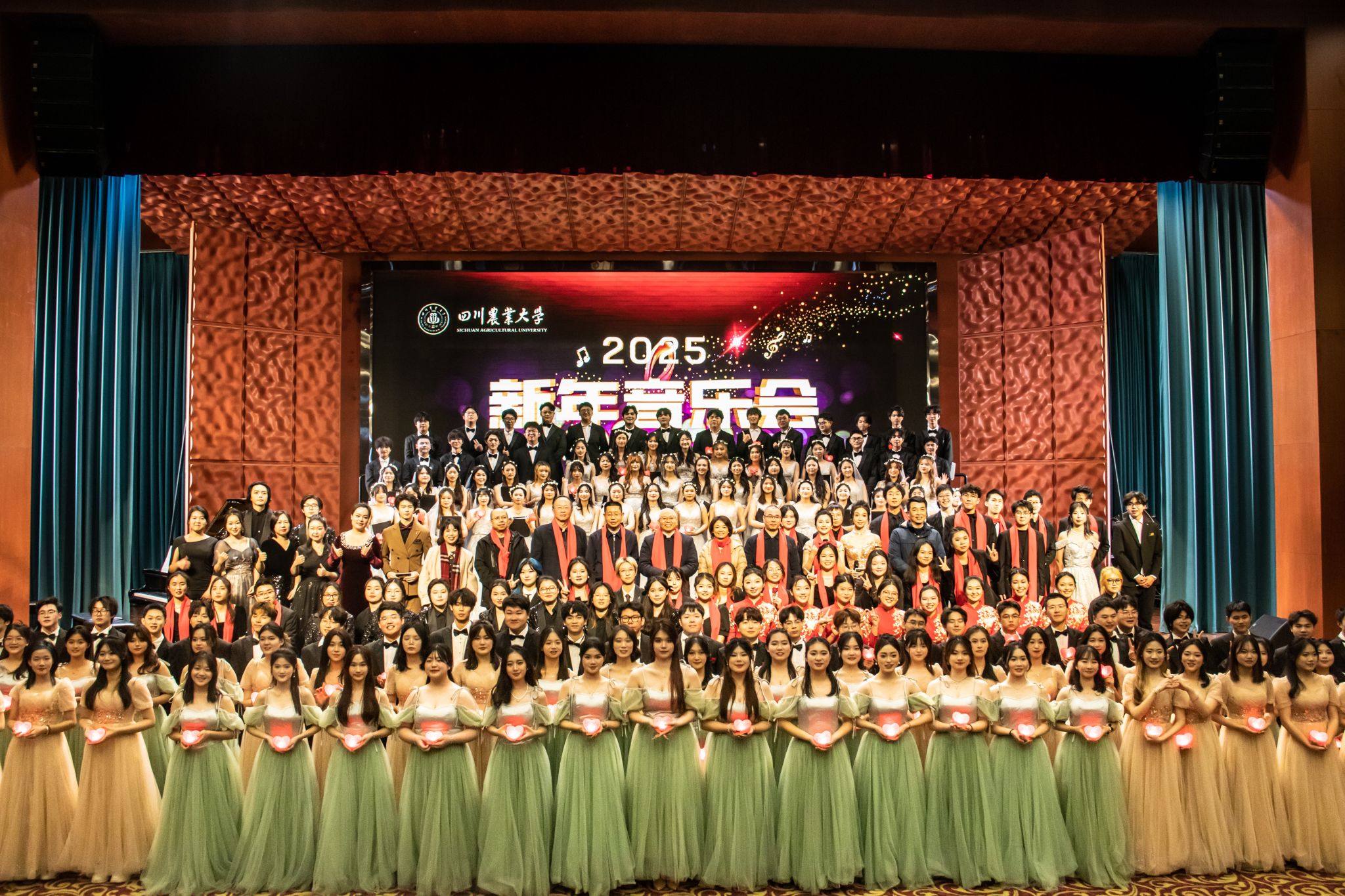 随着新年音乐会的落幕,2024年校园文化艺术系列活动圆满收官。作为校园文化育人的主阵地之一,校团委不断探索新时代思政及美育融合发展的有效路径,围绕立德树人的根本任务,深化爱党、爱国、爱校教育和弘扬优秀传统文化。打造《百年川农》庆祝中华人民共和国成立75周年舞台思政课,原创纪念江姐入读川农80周年话剧《誓言》,推出古诗词专场音乐会《乐府集·长歌行》等高水平艺术专场18场,“金银桐”三大赛、传统文化艺术节等50余个群众性校园文化精品活动吸引近20万人次参与,切实用红色文化、校本文化引领3万余名青年学子厚植“三农”情怀、勇于担当作为,投身强国建设,为学校培养造就大批德才兼备的知农爱农新型人才贡献力量。