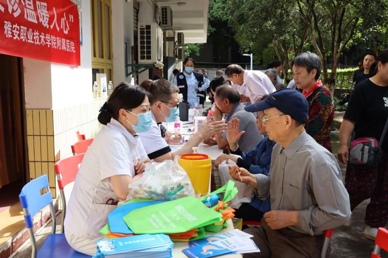 运动会现场还开展健康义诊、康养咨询活动。离退休管理处、后勤管理处联合雅安市职业技术学院附属医院、雨城区东城街道社区卫生服务中心在现场为老同志们开展健康体检服务宣传、居家上门医疗服务、中医推拿体验等,医生们为老同志们测量血压、血糖等,并针对个人健康状况以及日常生活中遇到的健康问题提供专业建议。泰康之家·蜀园养老社区的工作人员为老同志作康养咨询,帮助老年人更好地安享幸福晚年生活。