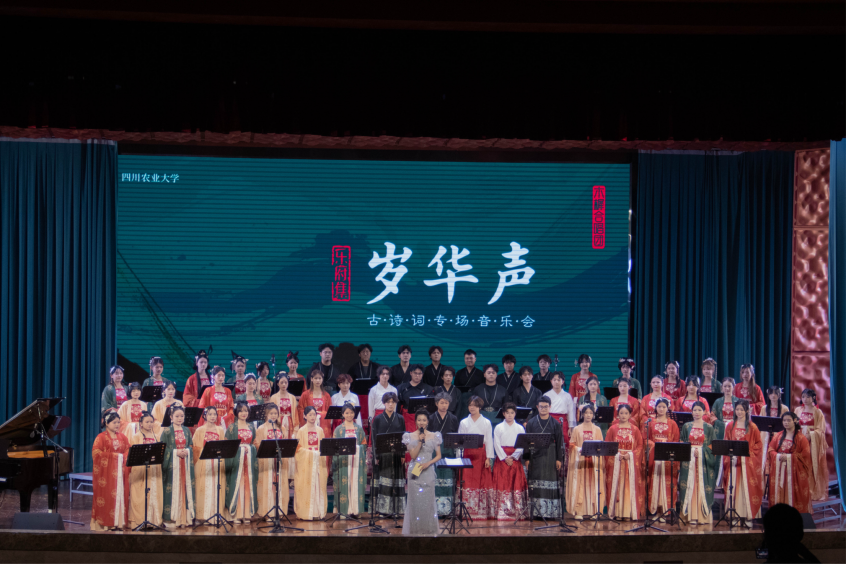 据悉,校团委从2023年开始打造“乐府集”系列古诗词音乐会专场,旨在通过古诗词与音乐结合的特色美育品牌活动引领学生弘扬与传承中华优秀传统文化。为不断提升专场质量,此次专场音乐会历经线上线下4个多月反复打磨,作品学习、排练时长超200小时。后续,木樨合唱团还将走进成都实验外国语学校等中小学,用歌声为青少年带去诗词和中华传统文化之美。